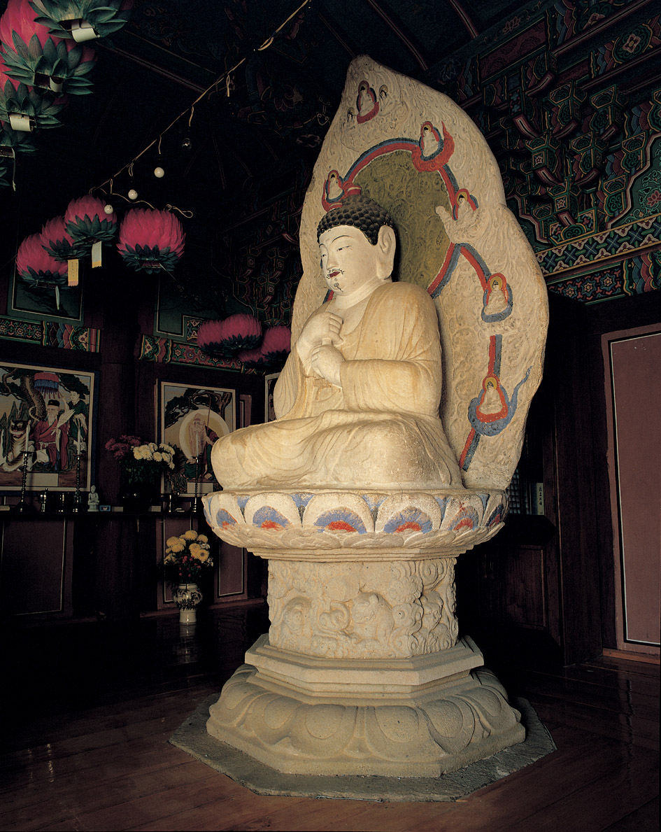 (왼손 검지를 오른 손으로 감싼 저 손모양이 비로자나불의 특징이다.)