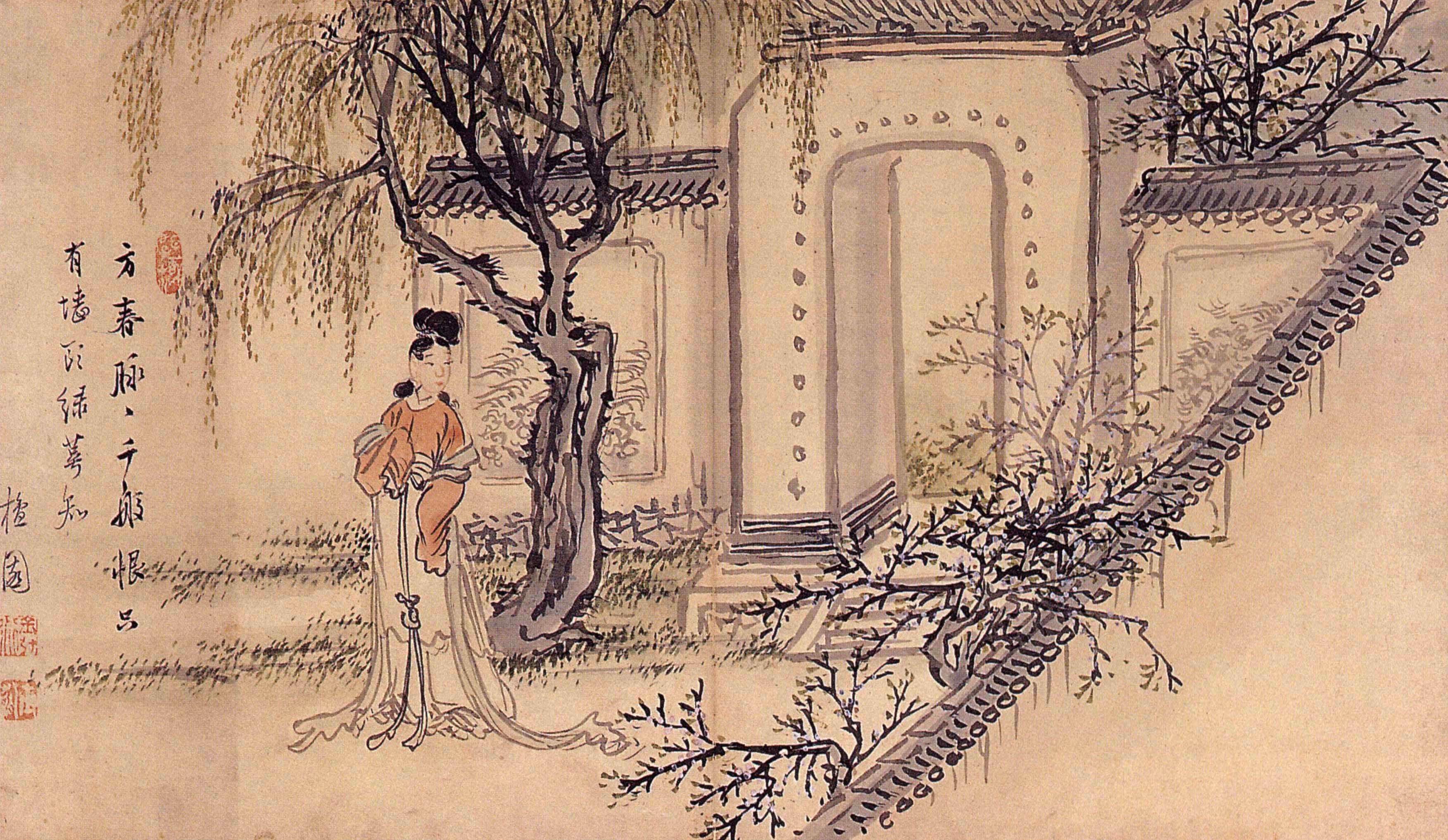 김홍도, 춘한맥맥_ 여인의 옆에 버드나무가 있다.