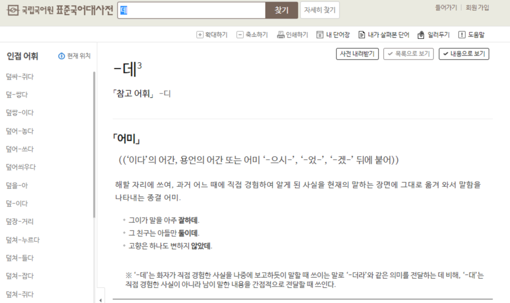'-데'를 써야 할지 '-대'를 써야 할지 고민된다면, '-다고 해'로 바꿔보는 것도 좋다. '-다고 해'가 자연스러우면 '-대'를 쓴다.