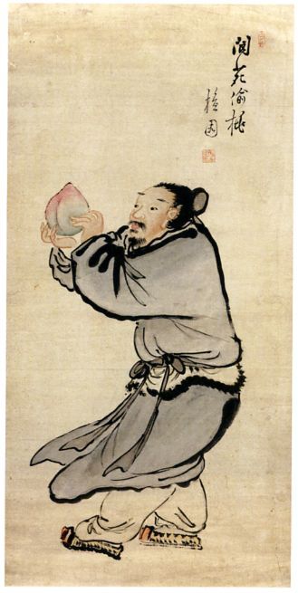 서왕모 / https://commons.wikimedia.org/wiki/File:Shan_Hai_Jing_-_Xi_Wangmu.jpg#/media/파일:Shan_Hai_Jing_-_Xi_Wangmu.jpg김홍도, 낭원투도 ( 낭원- 서왕모의 복숭아밭 - 에서 복숭아를 훔치다) / 간송미술관 소장