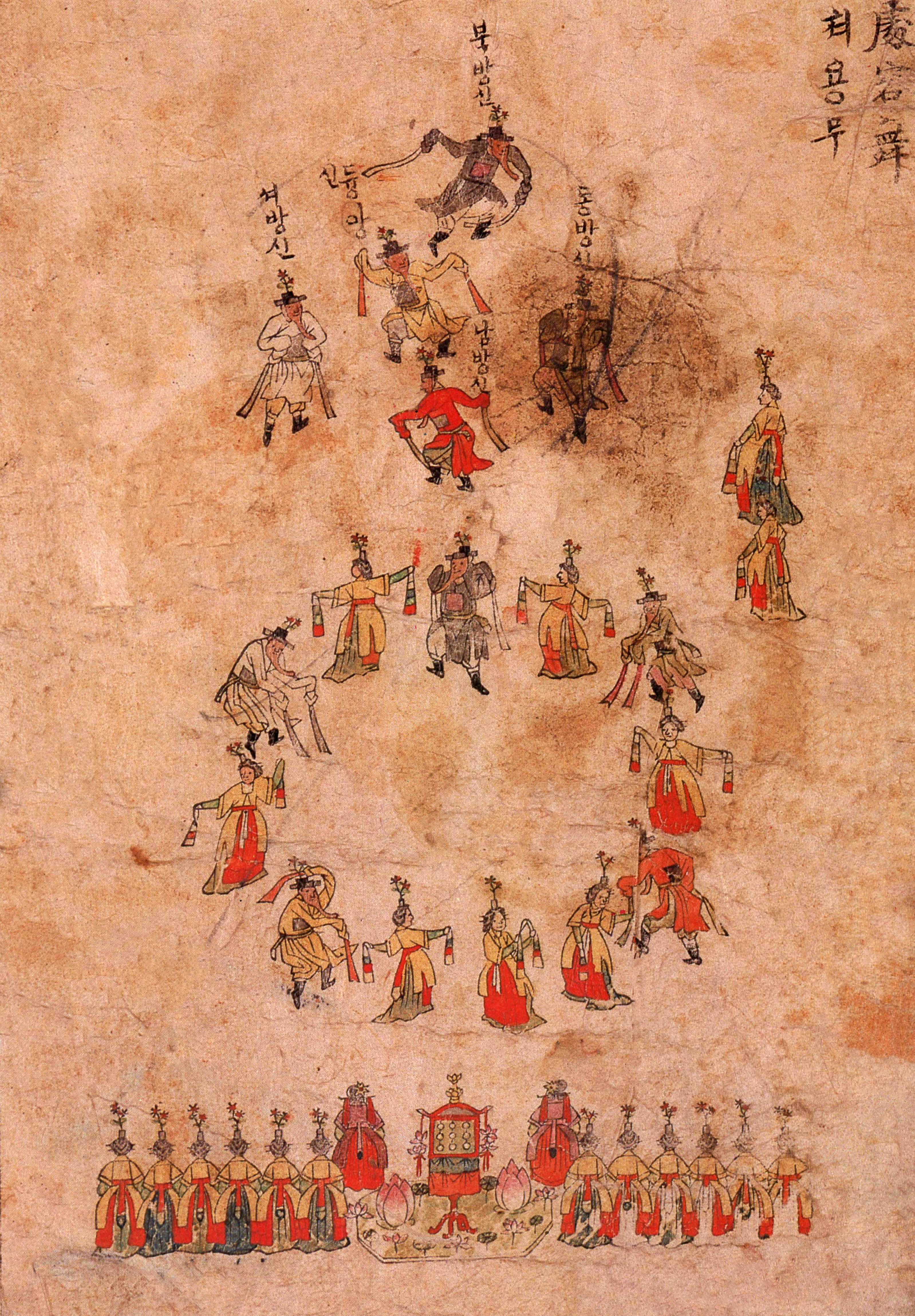 처용무 춤추는 아래 사진 속 처용들 보시면 배를 불룩하게 한 게 보이네요 ㅎㅎㅎ